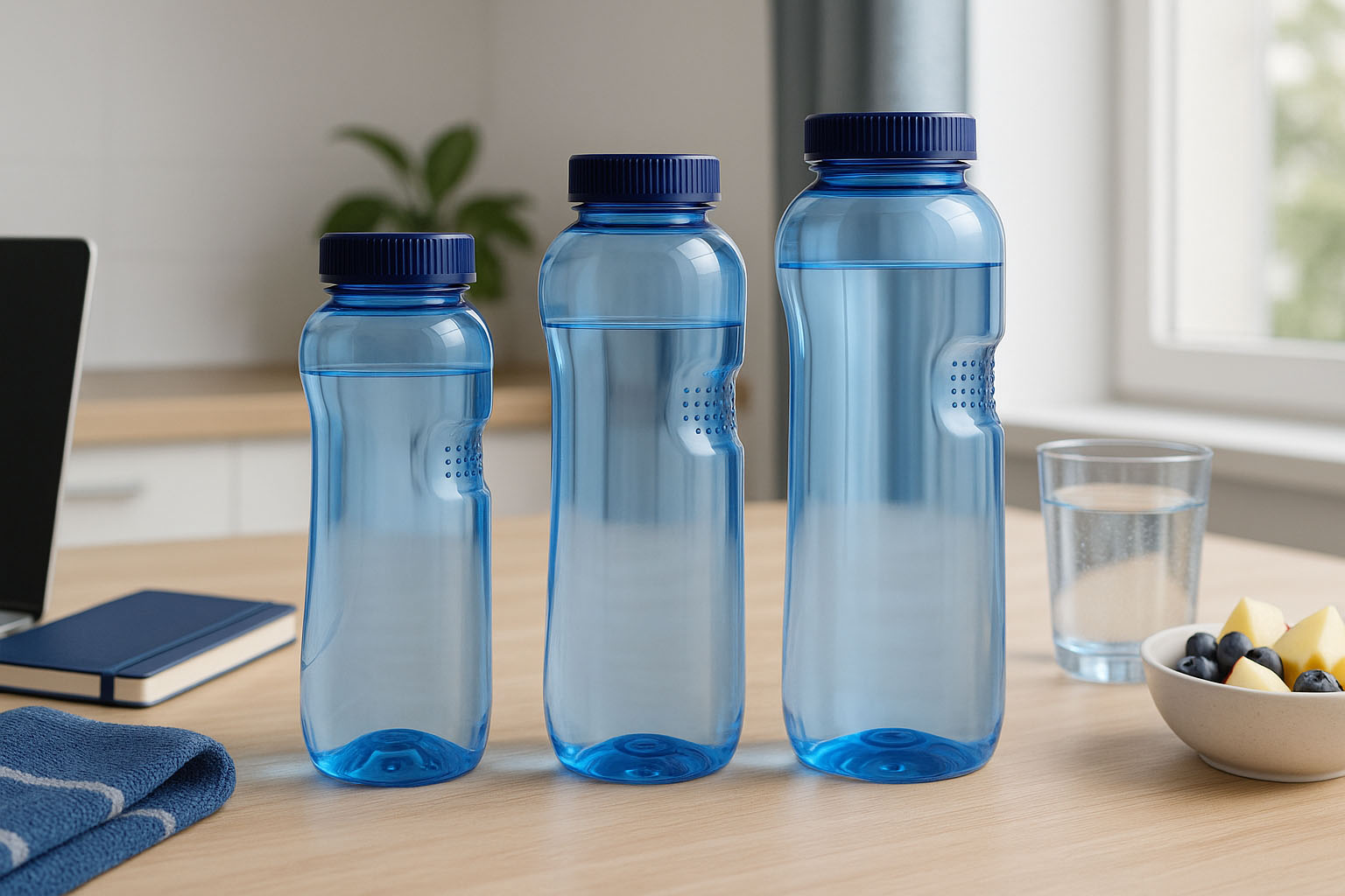 Ergonomický design s úchopovou drážkou zajišťuje pohodlné používání, zatímco výrazný modrý design dodává moderní vzhled. Dostupné v objemech od 500 do 1000 ml, jsou lahve ideální pro vodu, džusy nebo sportovní nápoje – perfektní na cesty, do kanceláře nebo na trénink. Vyrobeno v Rakousku, přesvědčují svou kvalitou a dlouhou životností.