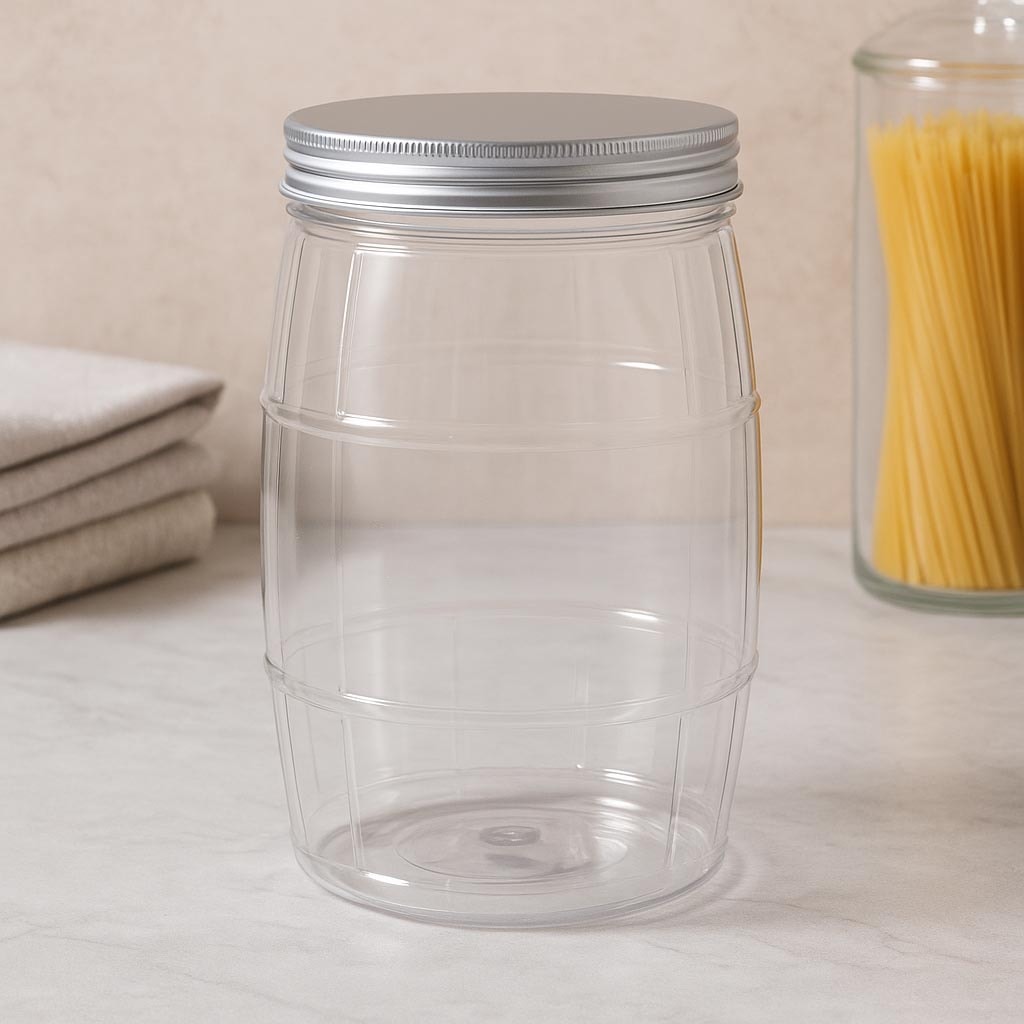 1500 ml pet box 'Barrel' Podrobně 1,5 litru může ve tvaru barelu.