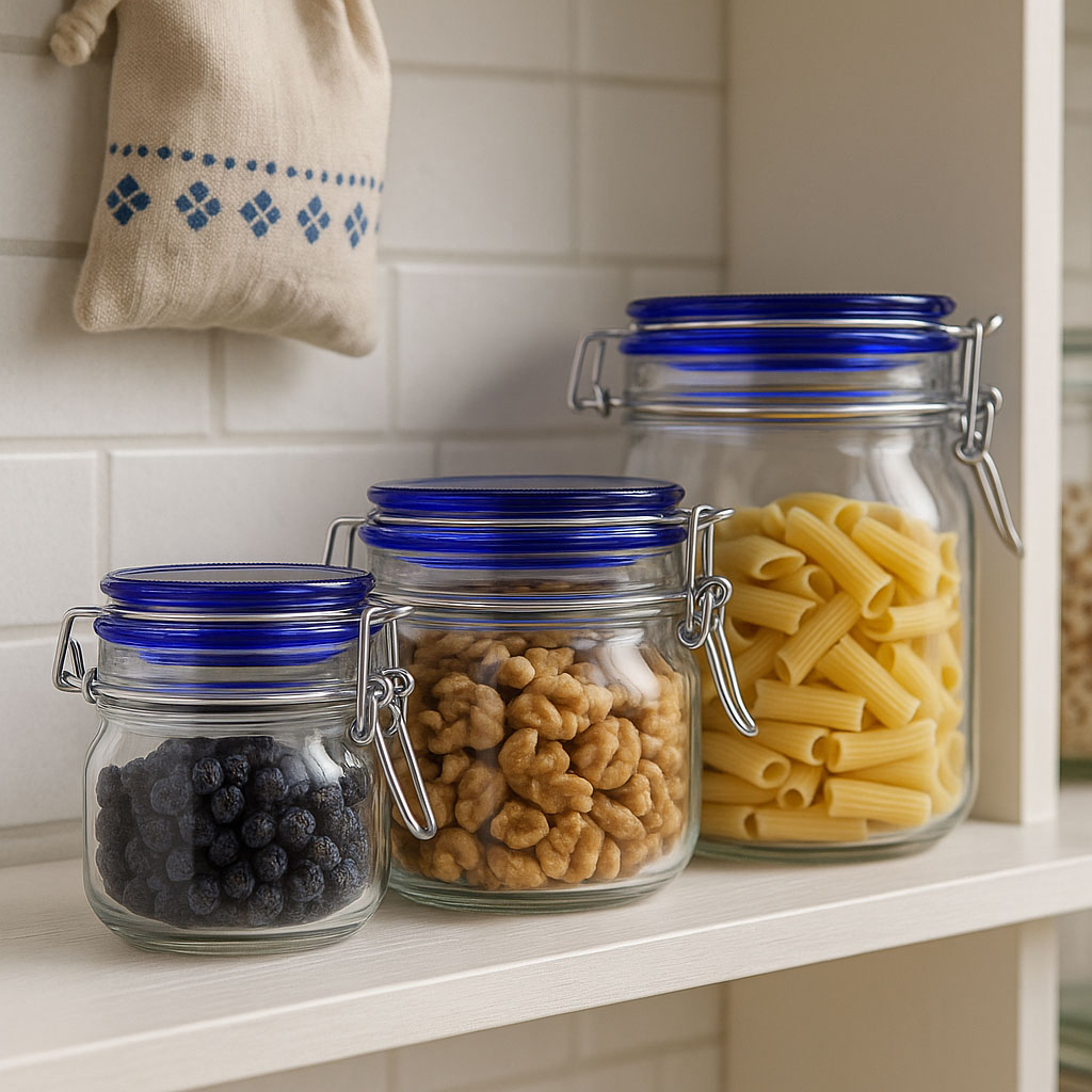 Řada „Fido Blue Top“ kombinuje osvědčenou funkčnost s moderním designovým prvkem. Vyrobená italskou tradiční společností Bormioli Rocco, tyto vysoce kvalitní sklenice s drátěným uzávěrem zaujmou svým čtvercovým tvarem a elegantním modrým skleněným víčkem, které jim dodává estetický nádech. K dispozici v objemech od 500 do 2000 ml, nabízí „Fido Blue Top“ všestranné možnosti použití – od konzervace domácích specialit až po stylové skladování zásob. Přiložený drátěný uzávěr v kombinaci se skleněným víčkem a gumovým těsněním zajišťuje vzduchotěsné uzavření.