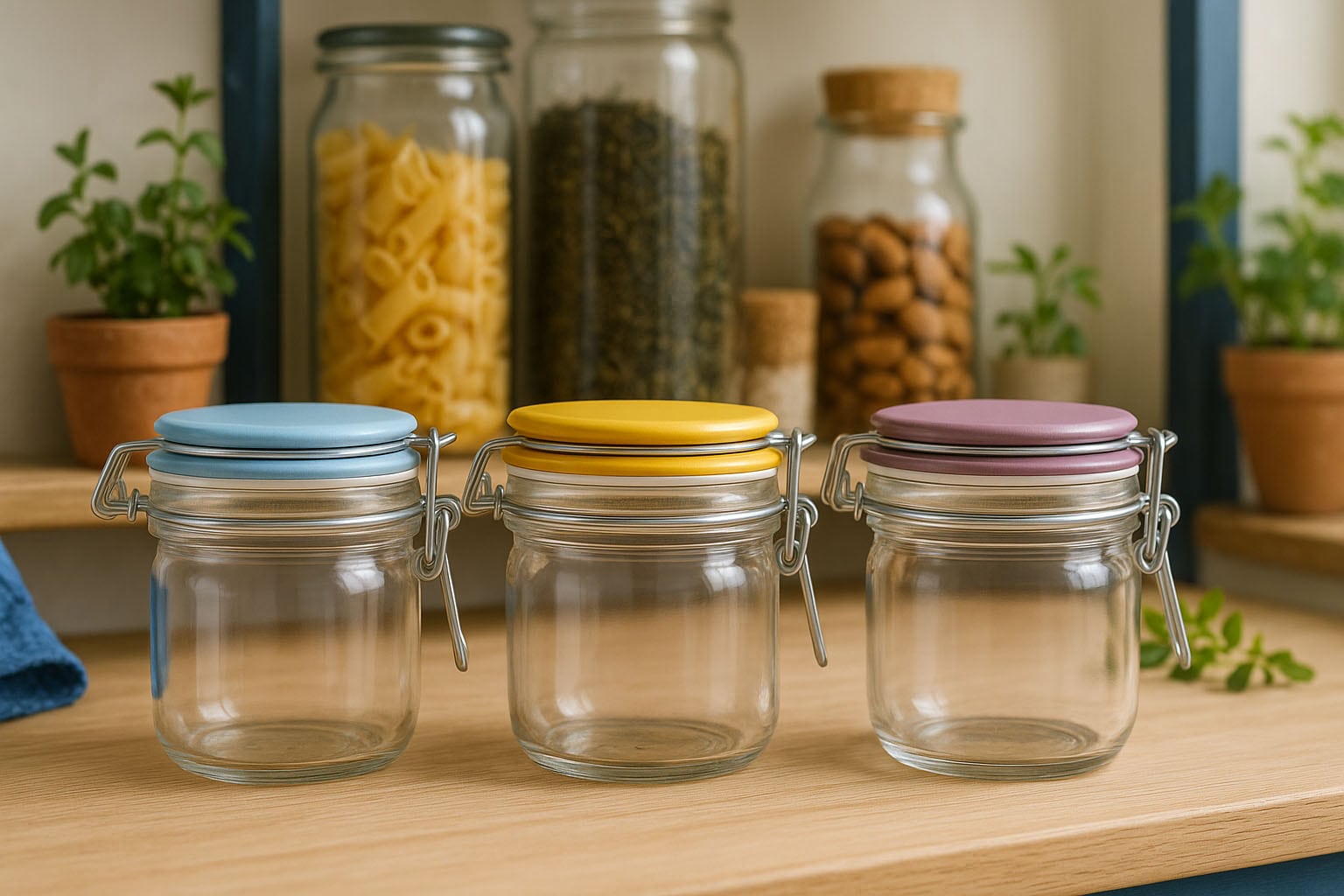 Řada „Fido“ spojuje klasický design s funkční všestranností. Vyrobeno renomovaným italským výrobcem Bormioli Rocco, toto skleněné víčko s drátěným uzávěrem zaujme svou kvalitní zpracováním a dlouhou životností. Každá sklenice je dodávána se stabilním drátěným uzávěrem, skleněným víčkem a gumovým těsněním, které zaručuje vzduchotěsné uzavření. Víčka jsou navíc dostupná v různých barvách – modrá, žlutá, zelená, růžová a fialová – a dodávají každé sklenici osobitý vzhled.