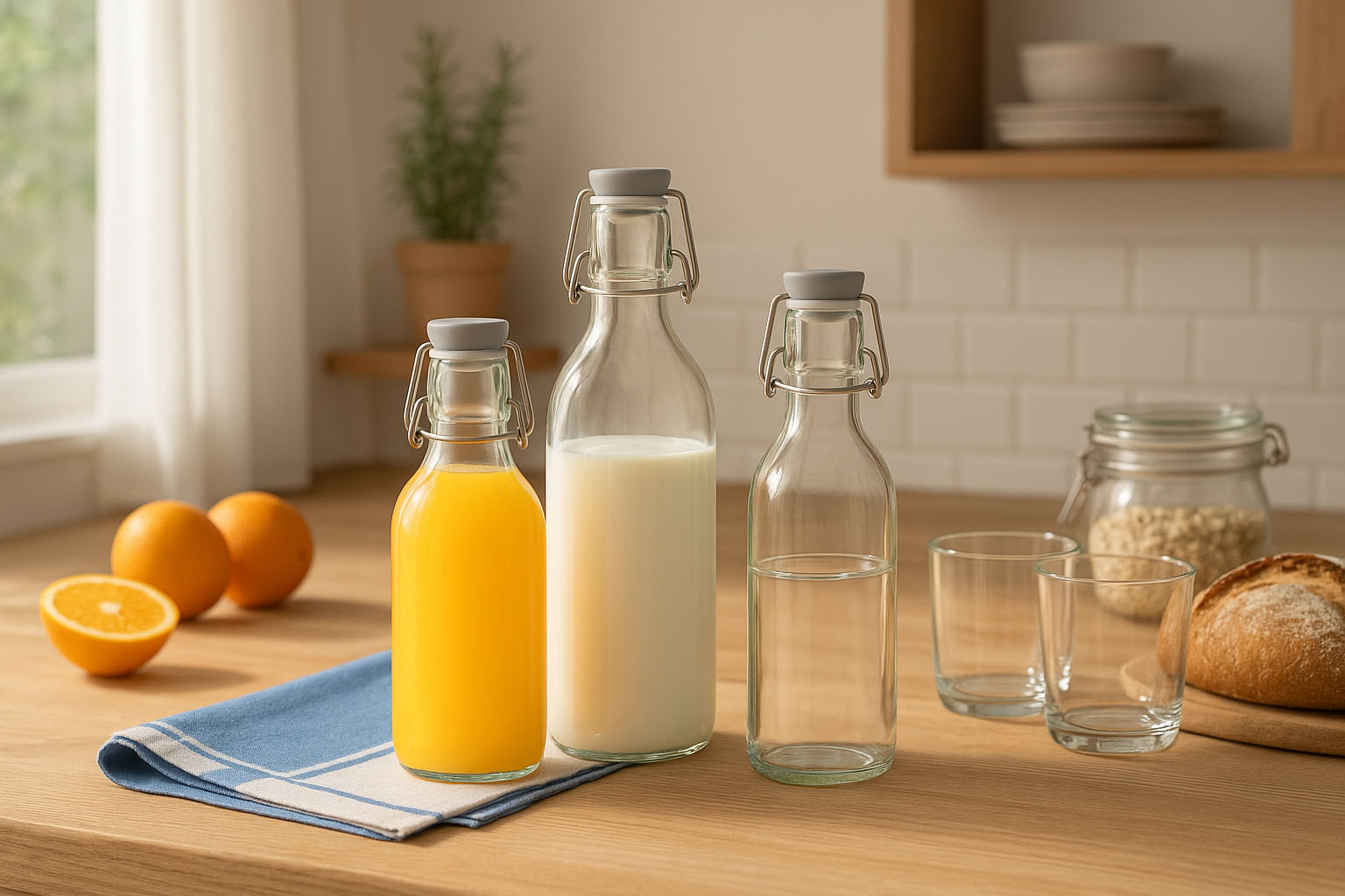 Díky svému univerzálnímu designu je řada „Emilia“ ideální pro džusy, mléko, víno a mnoho dalších náplní. Ať už pro každodenní použití v kuchyni, gastronomii nebo jako udržitelné balení pro kvalitní produkty – spojuje stylovou prezentaci s praktickým použitím.