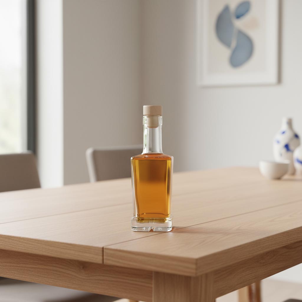 Produktová řada „Rene/Deborah“ od Flaschenland zahrnuje vysoce kvalitní čtvercové skleněné láhve, které se vyznačují svou všestranností a robustní konstrukcí. Hlavní předností této série je kombinace elegantního designu a vysoké funkčnosti, ideální pro uchovávání lihovin a dalších tekutin. Skleněná láhev „Rene“ o objemu 250 ml zaujme svým čtvercovým tvarem a praktickým korkovým uzávěrem, který zajišťuje bezpečné uzavření. Vyrobena z odolného skla, je láhev odolná vůči chladu, teplu, vhodná do mikrovlnné trouby i do trouby na pečení, a je tedy velmi všestranná. Navíc je vhodná do myčky nádobí, což čištění výrazně usnadňuje. Tyto vlastnosti činí z láhve stylovou nádobu.