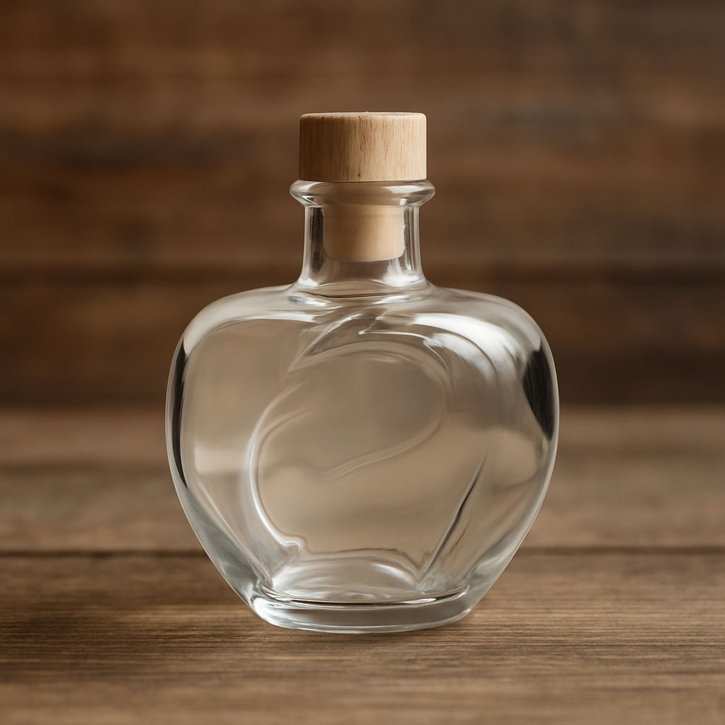 Motivní láhev „Jablko“ okouzlí svým jedinečným tvarem ve tvaru jablka a je ideální volbou pro ušlechtilé ovocné pálenky a likéry. Její detailní design z vysoce kvalitního čirého skla podtrhuje přirozený charakter obsahu a činí z ní skutečný poutač pohledů. Korek zajišťuje stylové a bezpečné uzavření, zatímco harmonický tvar zdůrazňuje hodnotu produktu.