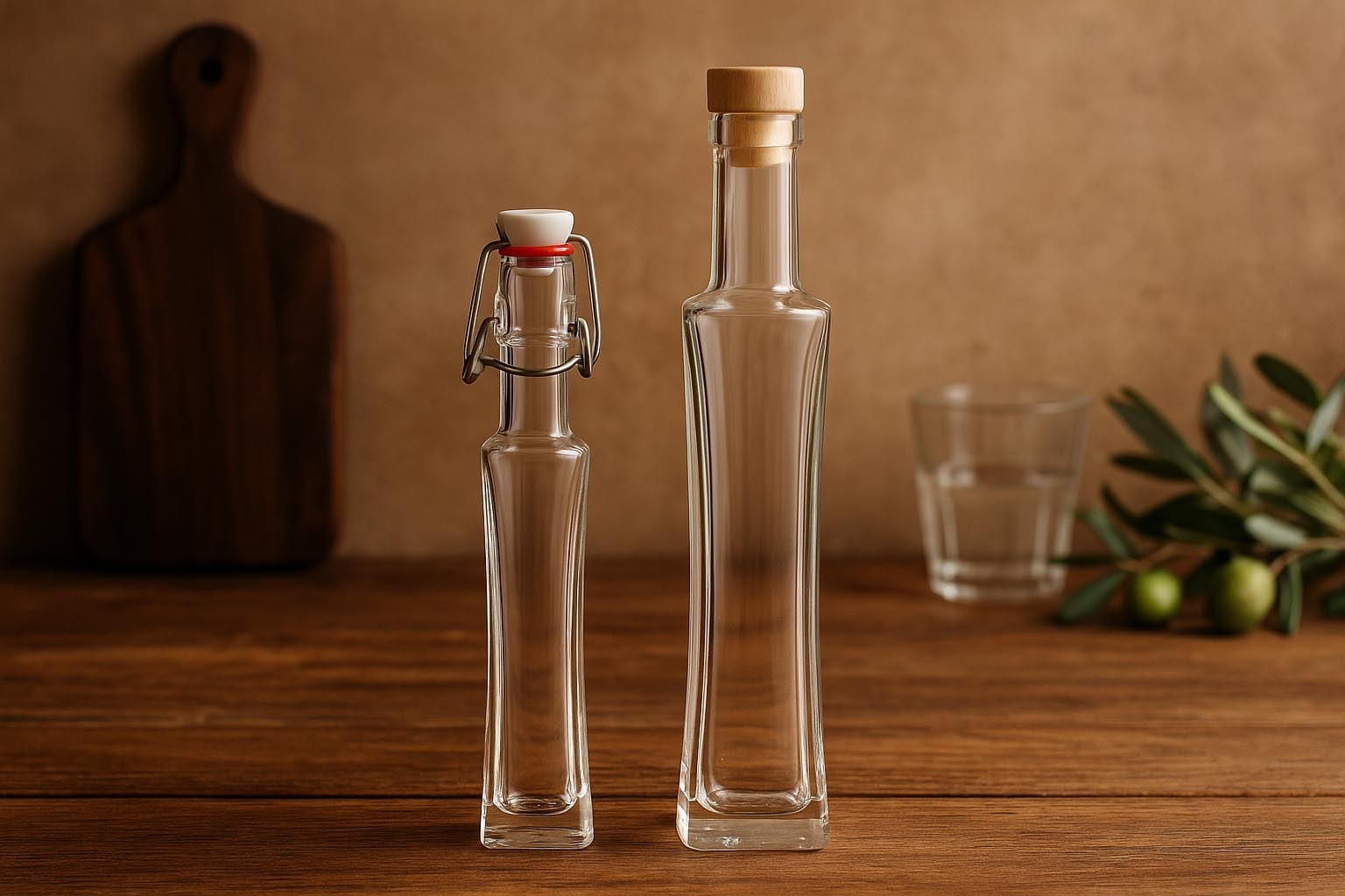 Láhev „Koko“ je vybavena buď uzávěrem s pákou, nebo korkovou zátkou, což ji umožňuje flexibilně přizpůsobit různým potřebám. Vhodné uzávěry jsou k dispozici v našem sortimentu a zaručují bezpečné a stylové skladování. Ať už pro ušlechtilé lihoviny, aromatické pálenky nebo speciální likéry – s řadou „Koko“ lze nápoje stylově prezentovat.