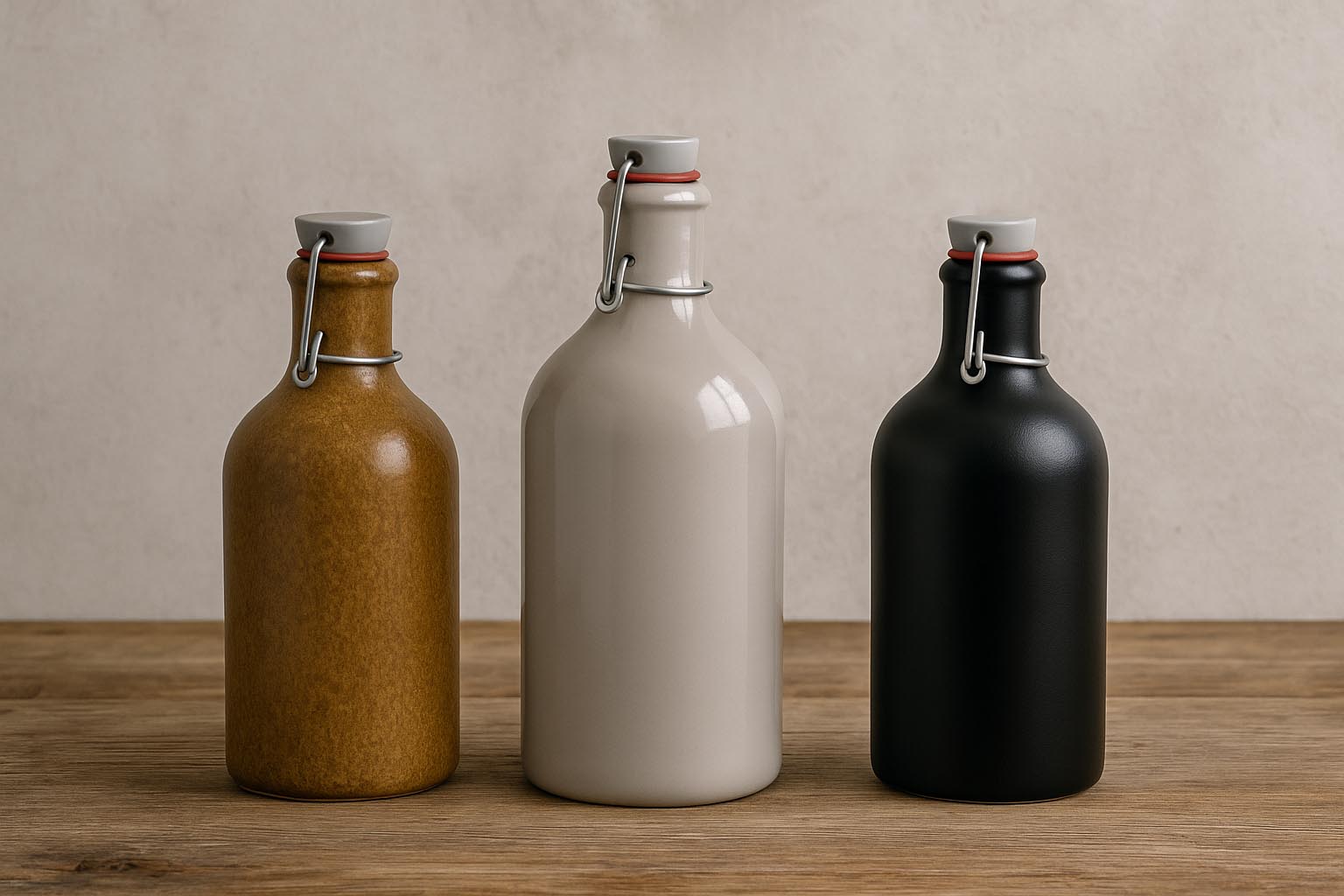 Samostatně dostupný pákový uzávěr a gumové těsnění zajišťují vzduchotěsné uzavření keramického džbánu. Ideální pro nápoje, octy a oleje, uchovávají čerstvost a dodávají lahvím nostalgické kouzlo. Snadno se otevírá a zavírá, pákový uzávěr nabízí spolehlivé a trvanlivé řešení.
