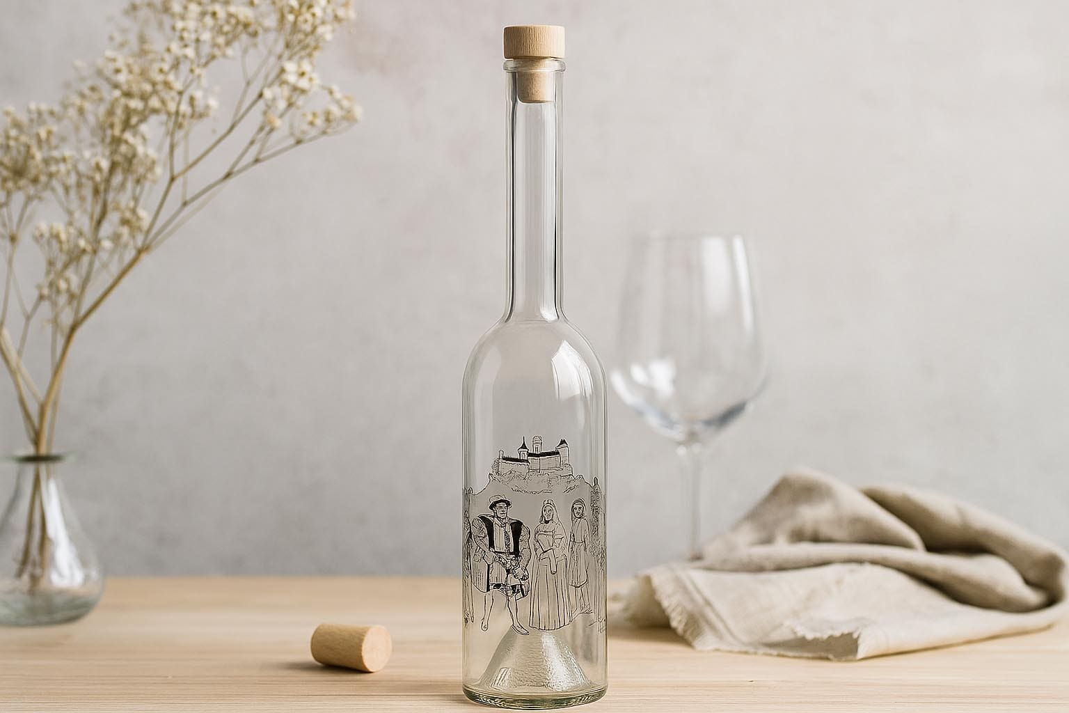 Lahve a sklenice 500 ml skleněná láhev 'Opera', motiv: Středověk, hrdlo: korek