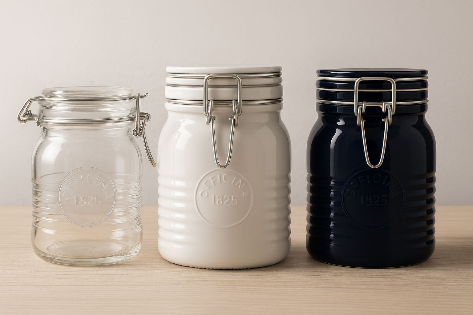 Řada „Officina 1825“ italského výrobce Bormioli Rocco spojuje vysoce kvalitní zpracování s nostalgickým šarmem. Výrazný design s drážkami na skle a vyraženým logem „1825“ činí každý pohár skutečným poutačem pohledů. Tyto stylové sklenice s drátěným uzávěrem byly speciálně vyvinuty pro výrobce delikates, hotely a náročné soukromé plniče, kteří kladou důraz na estetiku a kvalitu. K dispozici v barvách modrá, červená a bílá jako součást speciální série Color, nabízí „Officina 1825“ exkluzivní možnost chutně a bezpečně uchovávat jemné speciality.